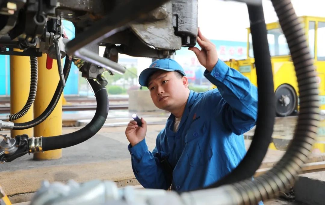 黄忆的工作是检修机车制动管路状态,保证机车平稳行驶,这就要对每一根管路的连接、每一个螺栓的力矩严格把控,不能有丝毫误差。