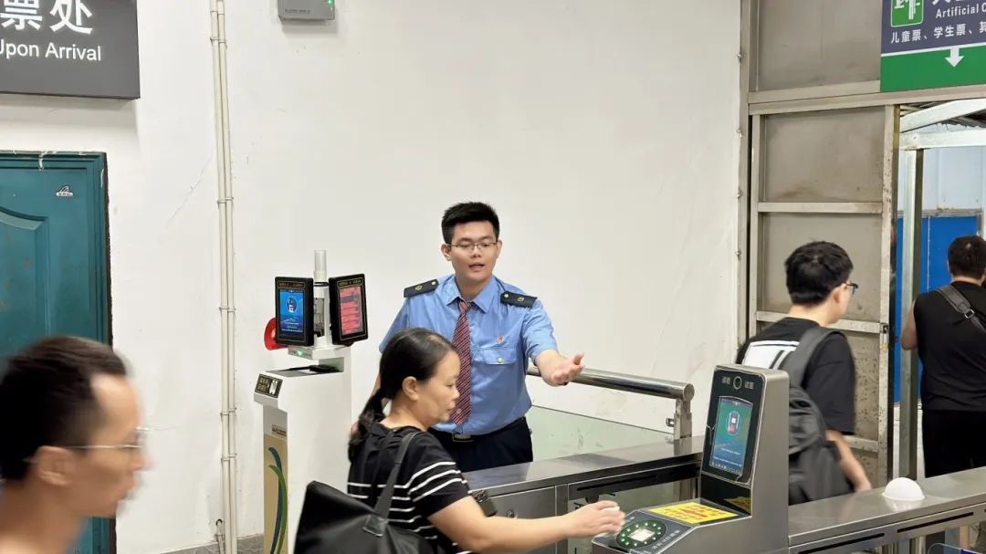 “K8111次列车即将进站,请站台上的旅客注意安全,列车停稳后先下后上,小心脚下,注意安全……”10月1日,正逢国庆黄金周旅客运输高峰,在武铁汉西车务段云梦车站2站台,刚入路2个月的青工莫子健熟练地引导旅客在指定位置排队候车,并不时地提醒带小孩的旅客注意安全。他,是莫子健,一个2002年1月出生的新生代,今年6月刚从石家庄铁道大学毕业,带着满腔热血与梦想,9月正式踏入了铁路这个大家庭,成为了一名正式的铁路职工。短短两个月的跟班学习,他不仅快速融入了这个大家庭,更是在第一个“在岗”国庆假期,用实际行动诠释了铁路职工“人民铁路为人民”的责任与担当。