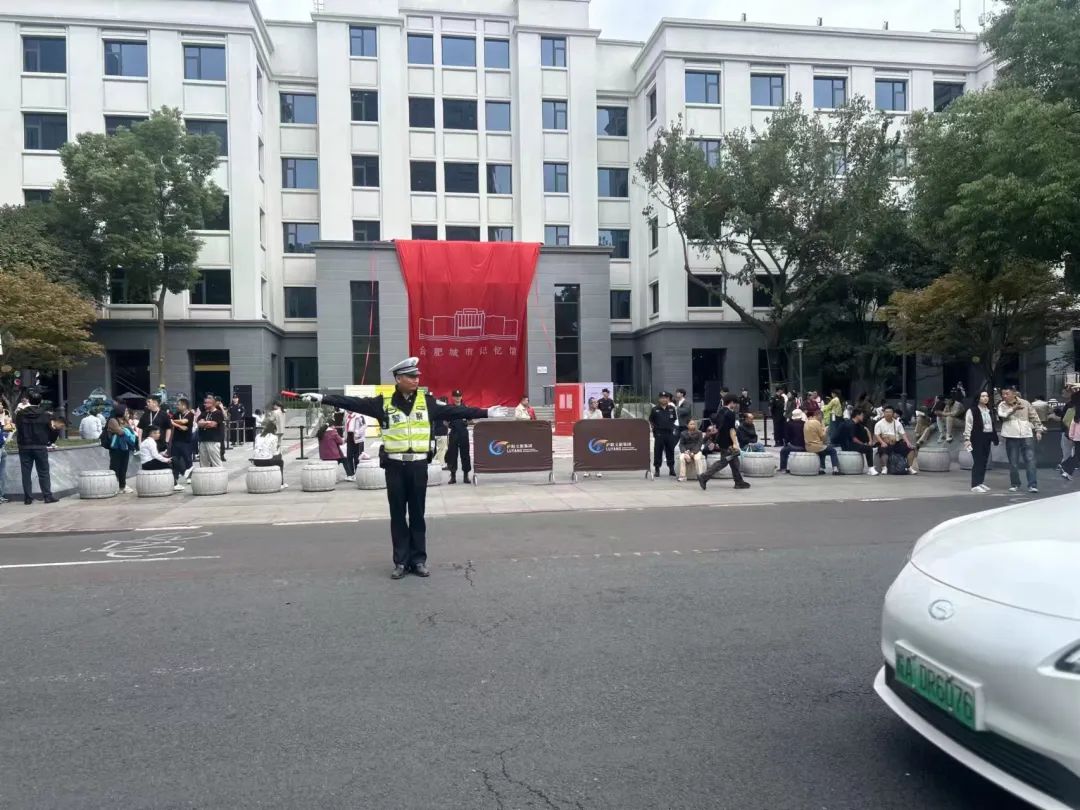10月1日上午,交警支队庐阳大队民警在寿春路逍遥津与合肥城市记忆馆周边道路指挥疏导交通,并为前来游玩的旅客提供方向指引。