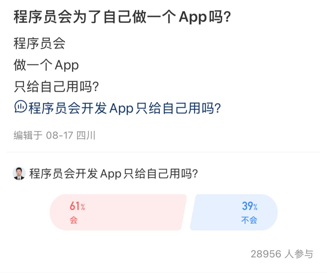 上个月,小辣椒在小红书上刷到一个投票:程序员们会为自己做一个 App 用吗?