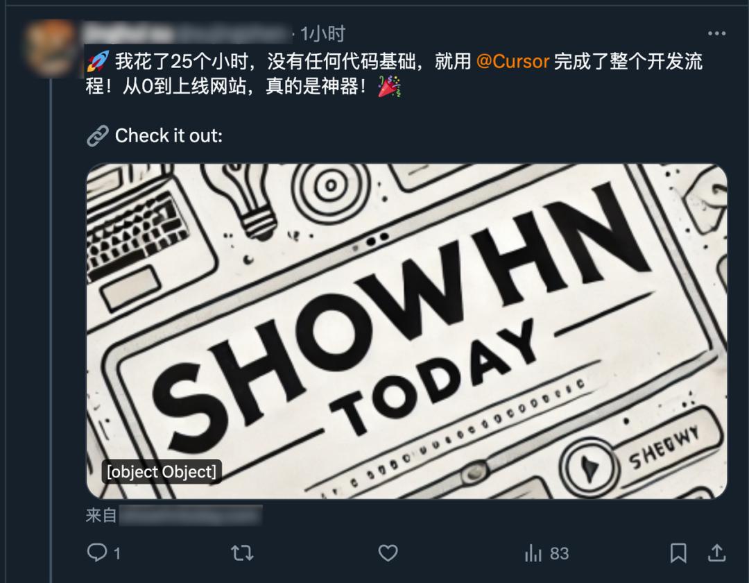 类似的还有很多。有人没任何代码基础,就靠着 Cursor ,前后花 25 个小时搓出一个网站来。