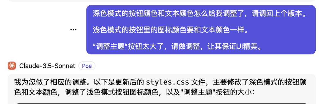 另外一旦逻辑复杂了,上下文联系变长了, AI 就会出幻觉。比如后面就是让它改个颜色,结果它不光动了我的文本,还删掉了我的功能。