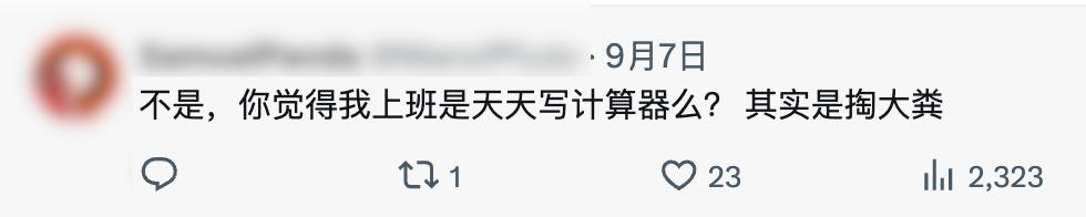 根据网友们讨论来看,程序员工作里最难的其实不是敲代码,而是需求分析,架构设计, DEBUG 。比如架构设计,假如一款软件是大树,那么程序员在种植大树之前,就要决定好树干的粗度( 核心框架和主要技术栈 ),树枝的方向和长度( 主要模块和可拓展性 ),树叶的大小和分布( 具体功能 )等等。