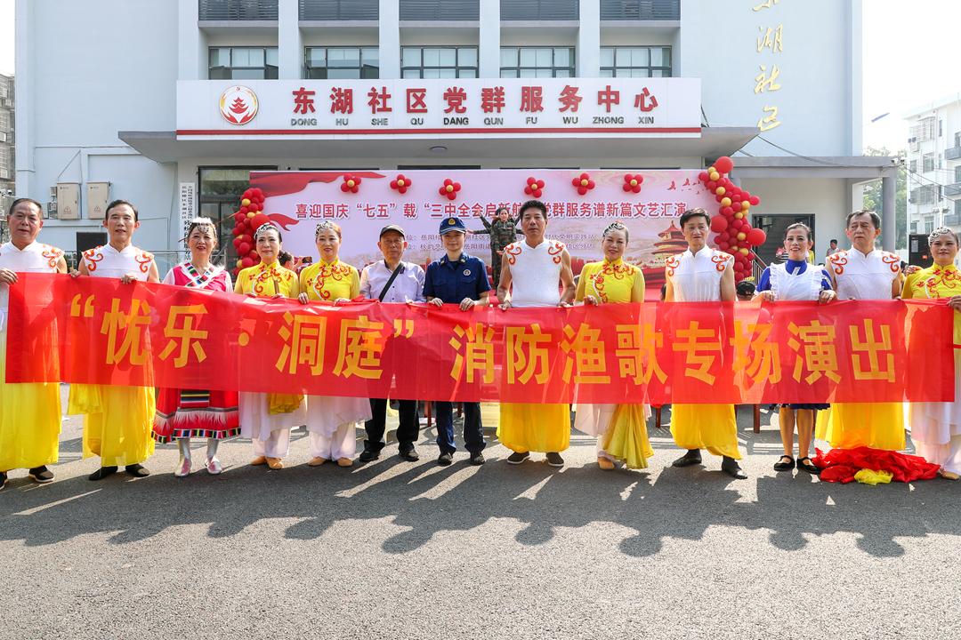 在岳阳市东湖社区,由岳阳市消防救援支队联合岳阳市民俗非遗馆创新打造的消防科普音乐剧《见面礼》、快板节目《消防安全进万家》再度唱响,将消防安全提示与岳阳本土非遗洞庭渔歌相结合,以群众喜闻乐见的方式创新开展消防知识宣传。“用火用电一定要注意安全,人走记得关火断电……”演出之余,洞庭渔歌非遗消防宣传队队员与消防宣传员在居民小区、商场市场、旅游景点等地开展消防安全知识宣传,向市民针对性普及节假日消防安全。