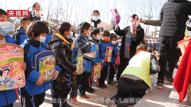胡雷跪在讲台上和孩子们分享自己的经历,他鼓励同学们说:“好好学习,将来为国家做贡献!”胡雷不但心怀大爱,还是一个很有家国情怀的人。