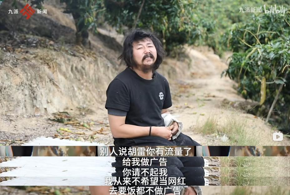 自从走红网络后,胡雷也面临许多诱惑,有些媒体公司看中了他身上的流量,想邀请他做广告,胡雷却倔强地说:“这辈子宁可要饭也不去做广告!”