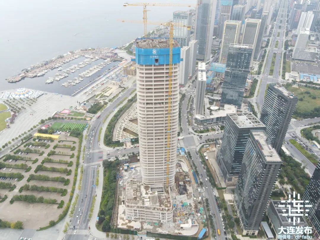 中建八局东北公司大连国际航运中心大厦项目党支部书记丁齐钰介绍,目前,工程正处于主体以及二次结构砌筑施工阶段,塔楼主体结构施工至50层,二次结构施工至38层。