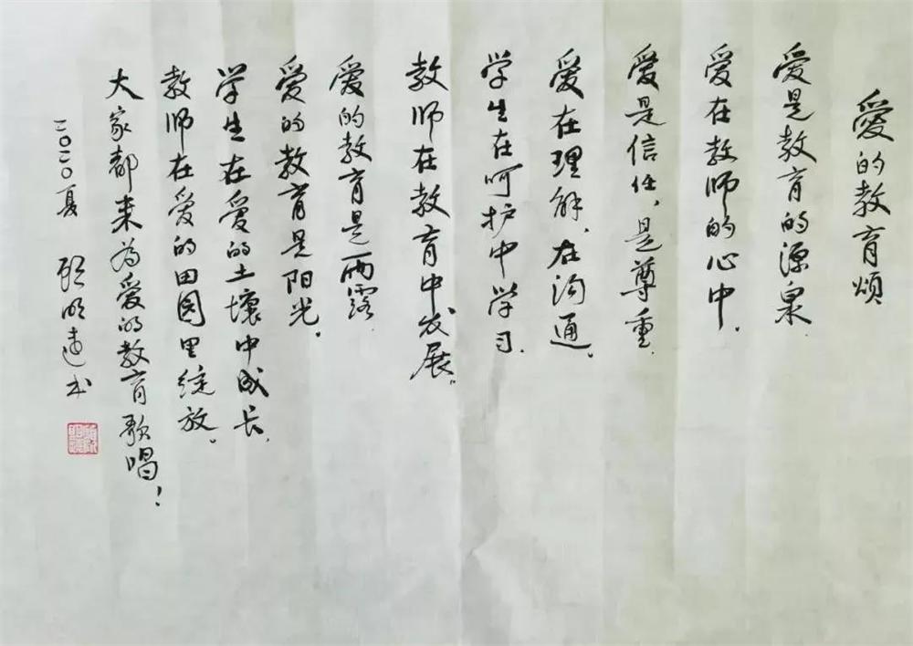顾明远先生所写的《爱的教育颂》 图源:北京师范大学