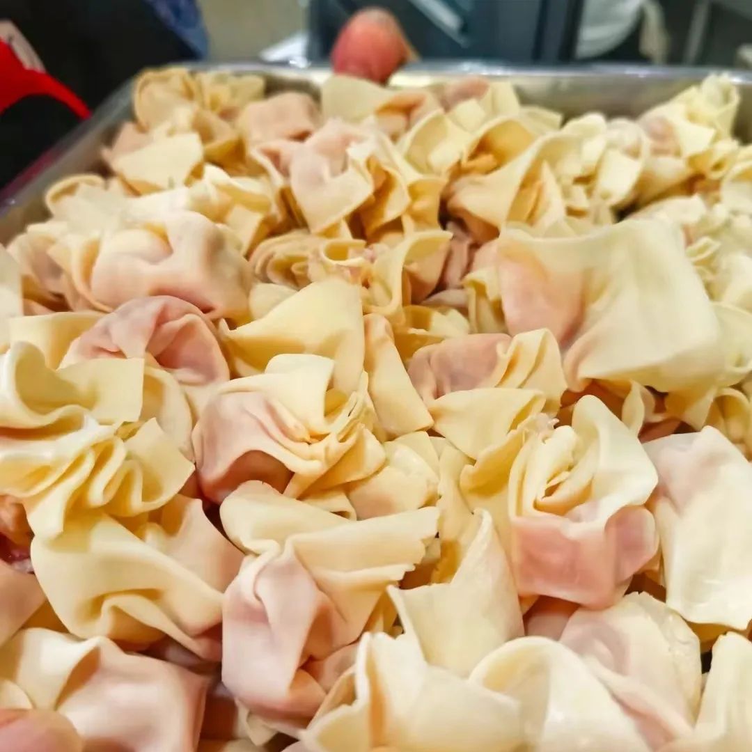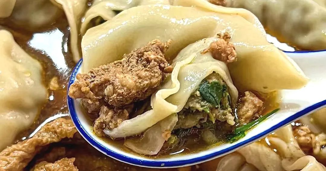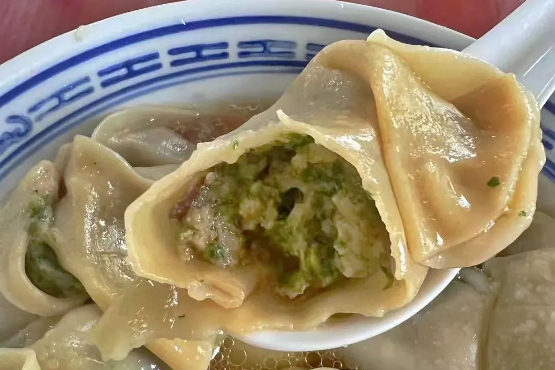 皮子都是手工擀制,包法也区别于小馄饨:先挑起一点肉馅抹在皮子一角,看似随手一捏,但也最考验手上功夫,既要包裹住肉馅,又要留足空气感。薄到半透明,甚至看得清里面的肉馅,煮熟后轻轻一抿,就在嘴里化开。