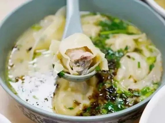 上海少见的超小号馄饨!来自安徽江浙一带,从小摊担子上开始流行,逐渐成为地区代表。因薄皮如纱,被称为「绉纱馄饨」,有种更可爱的叫法是「泡泡馄饨」。