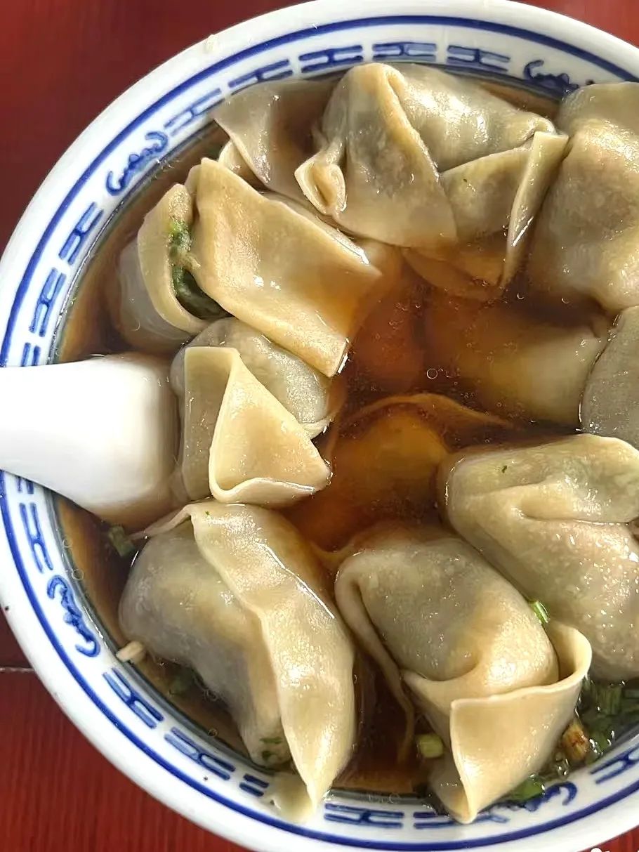 泛着淡淡酱油香的汤底很清澈,上面浮着的猪油渣和葱末是汤头的灵魂。吸溜一口,皮薄馅嫩,味美汤鲜!注意的是,小馄饨需要火速开吃,稍微放一会就会变成面糊状,口感可能就不是最佳啦。