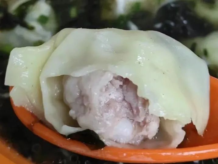 馄饨皮薄如蝉翼,粉嫩嫩的猪肉细致剁成泥,纯肉馅儿。不用酱油老酒和其他佐料调味,入口鲜弹。蛋皮铺了整整一碗,还有紫菜、虾皮、榨菜、灵魂猪油,最后再来一勺鲜辣粉,是自己买生馄饨回家都煮不出的味道!
