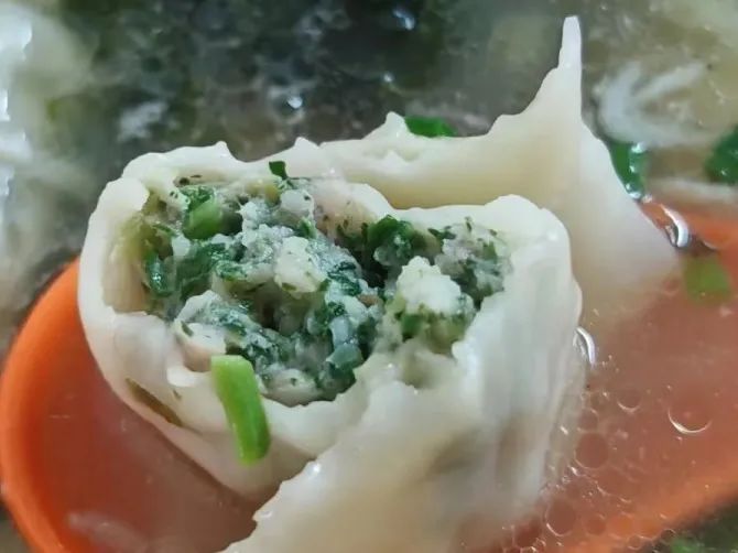 干拌的冷馄饨是他家首选,1年四季都供应,秘制麻酱包裹每只馄饨,麻酱的浓稠度很好,不糊嘴,调味也是恰到好处。小编点了一份黑鸡枞菌拌馄饨,咬一口,菌菇的鲜香四溢,好吃!喜欢吃点汤汤水水的话,推荐他家的特色荠菜肉馄饨~