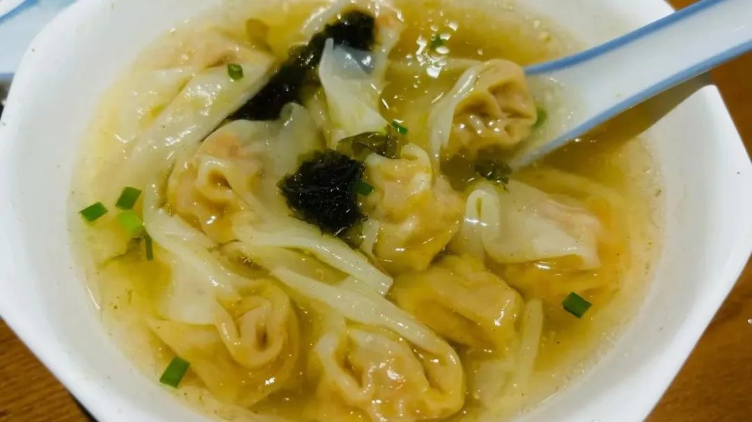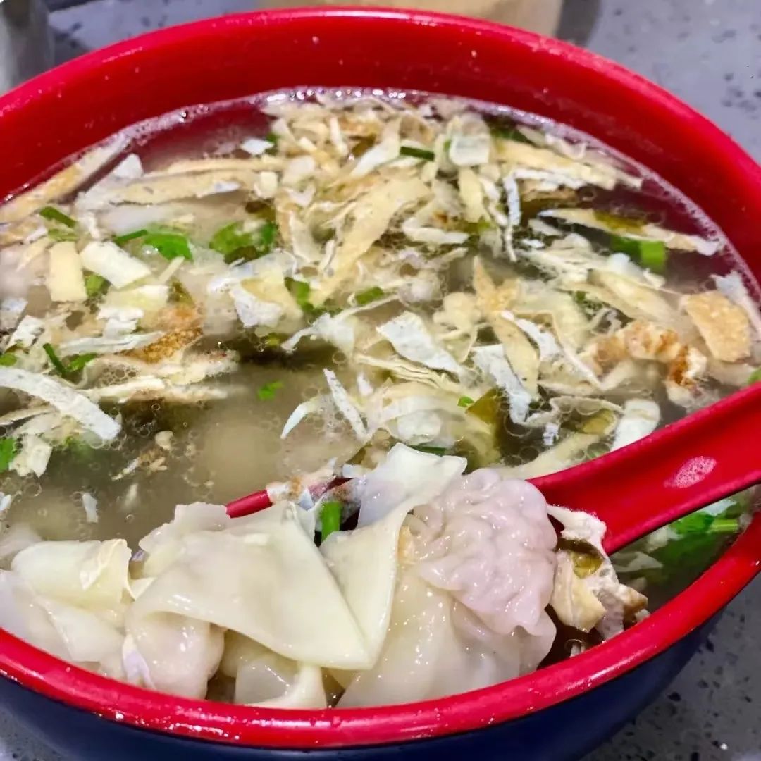 煮熟后的馄饨漂在汤面上,圆滚滚、轻飘飘,外皮剔透,内里肉馅泛着微红;喷香的猪油渣与葱花将鲜味吊起,1碗下肚,鲜掉眉毛!
