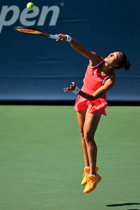 2023年9月,郑钦文在美网奋力挥拍。
