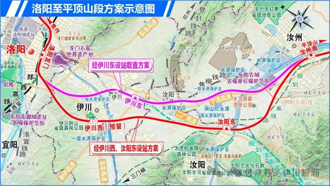 全线新建沁阳西、济源东、孟津北、汝阳东、汝州南车站5座车站,改建洛阳龙门、焦作西站2座;预留伊川西站1座。