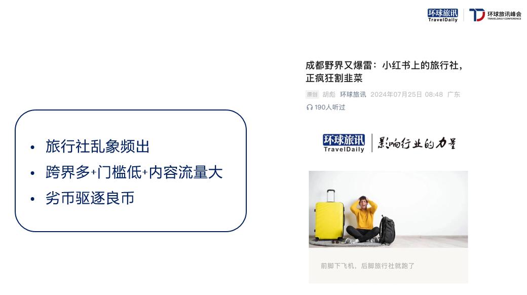 而是它毕竟是做内容的一个平台,不像携程这样的OTA在交易环节把控非常严格。很多机构就把它当做一个比较新兴的、颇有煽动性的渠道,可以直接去触达消费者,最终造成了这样的结果。