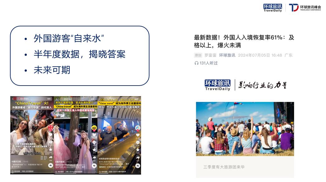 但是我们沿着这条线,继续做了跟踪报道,看到今年上半年国家移民管理局发布的“纯外国人入境游”的数据,仅仅恢复到了2019年的61%。
