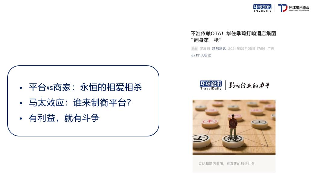 它主要是讲现在有很多中小型酒店,尤其是单体酒店,对于和OTA的合作,他们心里边的怨气已经是大得不得了。