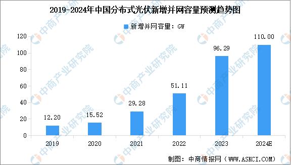 近年来,受益于政策推动、光伏技术进步和需求增长,中国分布式光伏新增装机容量快速增长。中商产业研究院发布的《2024-2029年中国分布式光伏行业市场前景预测及未来发展趋势研究报告》显示,2023年全国分布式光伏新增并网容量达到了96.29GW,同比增长88%。2024年上半年,全国分布式光伏新增并网容量52.88GW。中商产业研究院分析师预测,2024年全年中国分布式光伏新增并网容量将达到110GW。