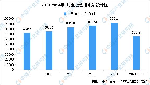 我国用电量保持平稳增长,国家能源局数据显示,2024年1~8月全社会用电量累计65619亿千瓦时,同比增长7.9%,其中规模以上工业发电量为62379亿千瓦时。从分产业用电看,第一产业用电量914亿千瓦时,同比增长7.0%;第二产业用电量42006亿千瓦时,同比增长6.3%;第三产业用电量12301亿千瓦时,同比增长11.0%;城乡居民生活用电量10398亿千瓦时,同比增长10.9%。