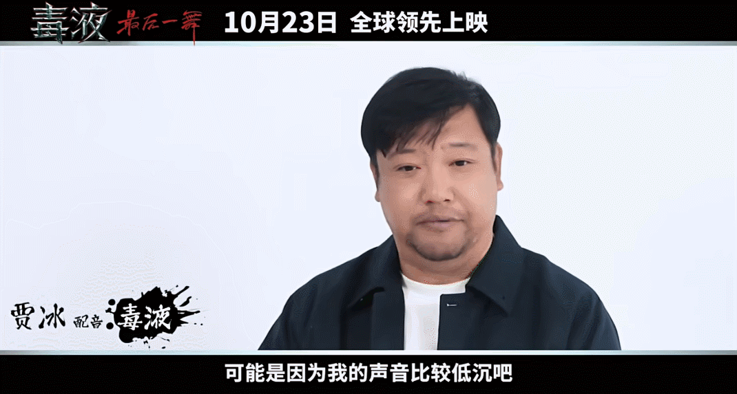 当然在官方预告中释出的采访片段,贾冰给出了自己和毒液相同点的理解,声音低沉、搞笑气质、“在反派界有点搞笑地位”。