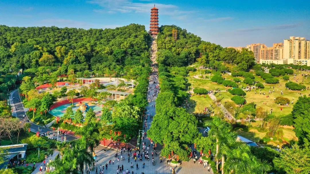 笔冠峰主峰海拔178米从峰顶既可俯瞰繁华的城市风光