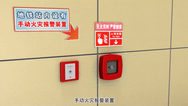 在车站内发现火情时,应第一时间通知车站工作人员,同时按下报警按钮。