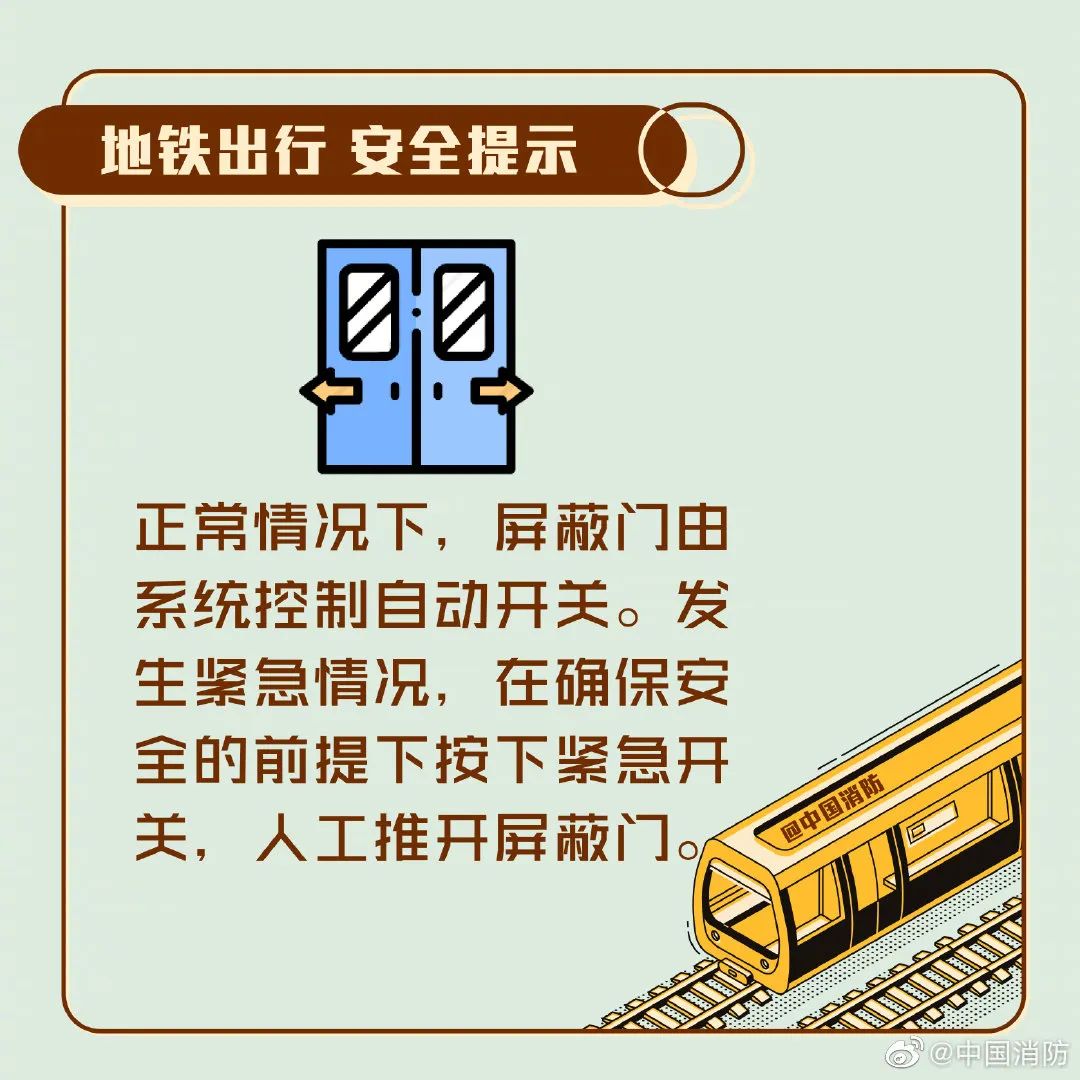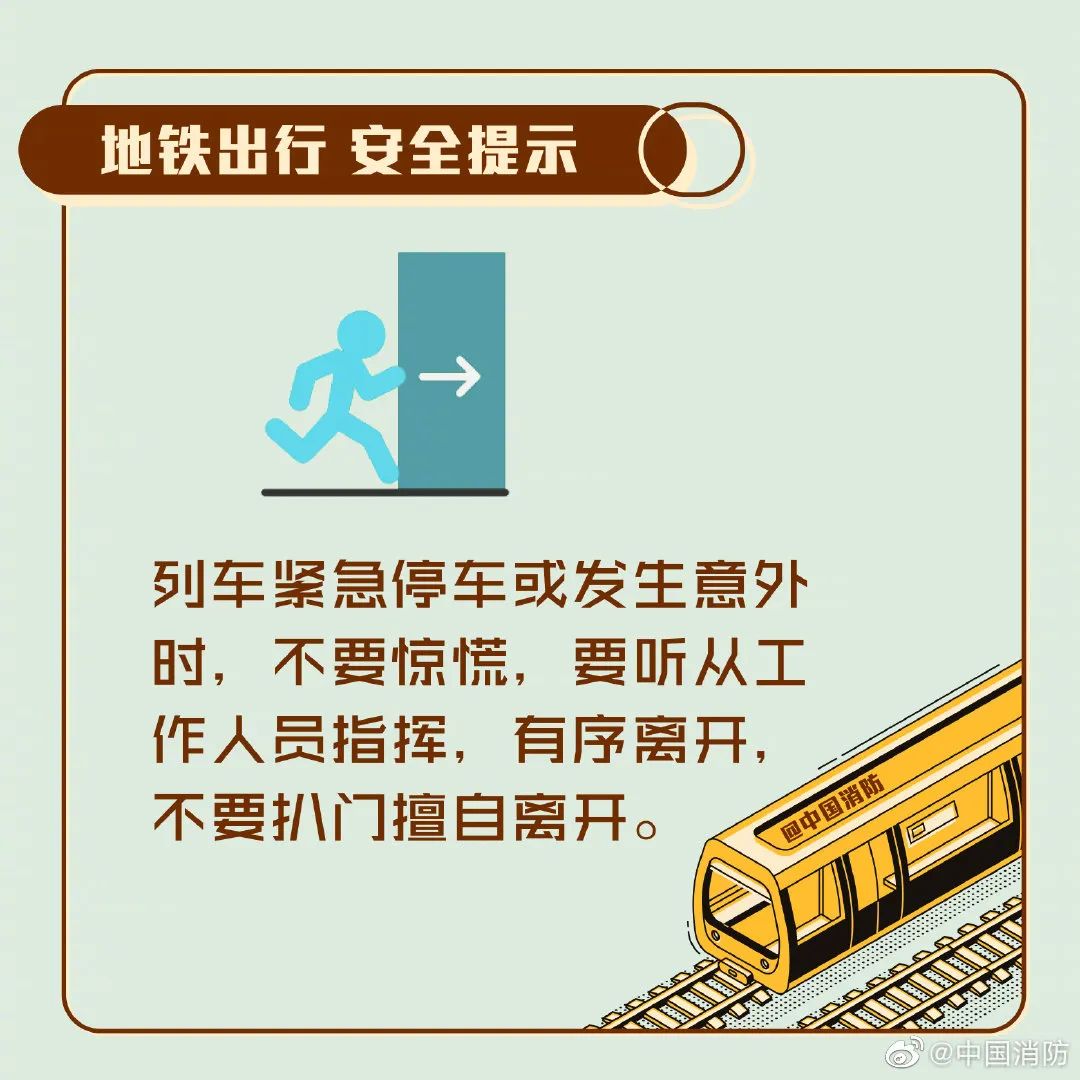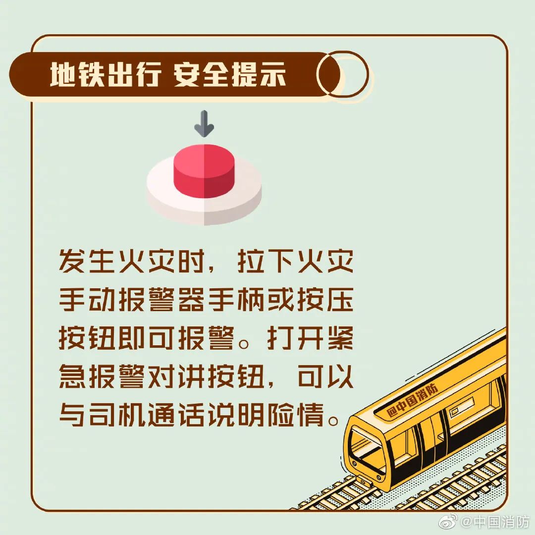 注意:要往逆风方向逃生;地铁隧道内通常为双向车道,不要因为慌乱跳入另一条车道。另外,应对火情时须注意: