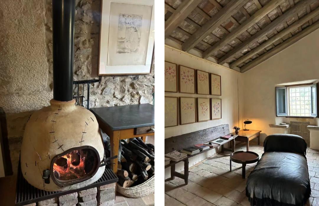 ▲这间是 Elsa 在镇上修复的 25 个屋子里的最后一个Projet,一个面积更宽广的farmhouse。她在这个地方办展览、陈列她数年来珍藏的艺术品,墙上挂着Picaso,餐厅旁是Robert Llimos,屋里有Marcel Duchamp,她在这里欢迎她最好的艺术家朋友到来,Andy Warhol拥有一个房间。我惊叹于她的丰富,她修复的这25个房子,每一个的风格都不一样,且陈设的物件极为多样。