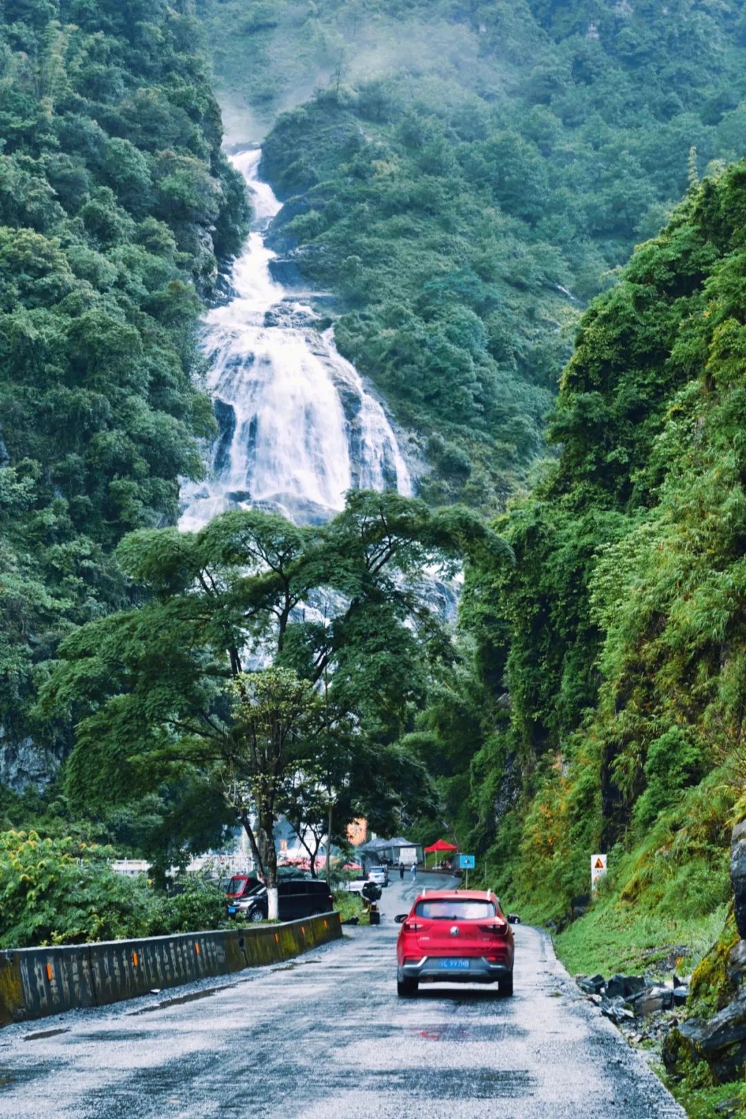 南恩瀑布在省道S307旁,银白色流水从天而降。摄影/大脚CL