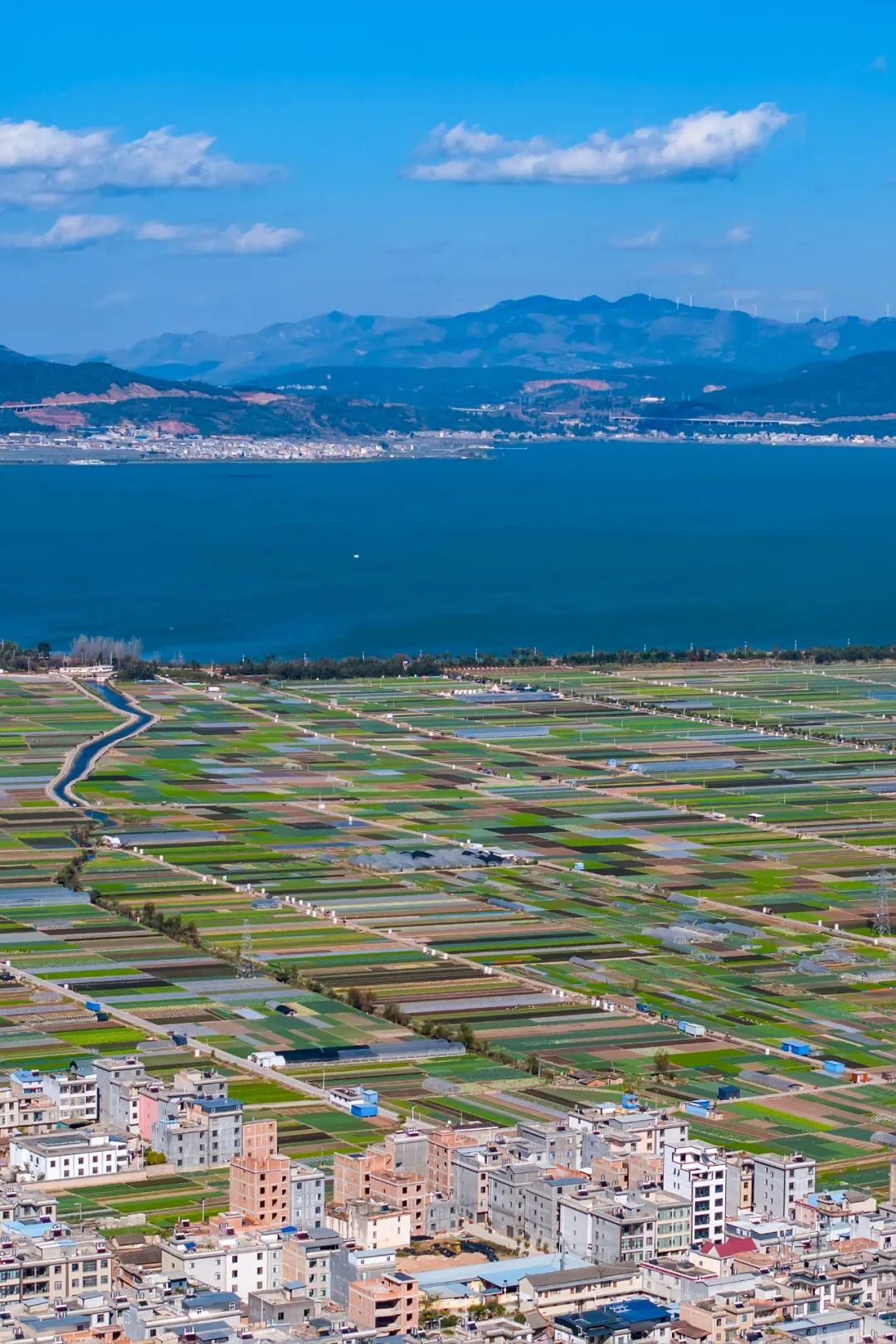 在通海的杞麓湖,不仅本身美丽也孕育了湖畔多彩的田地。