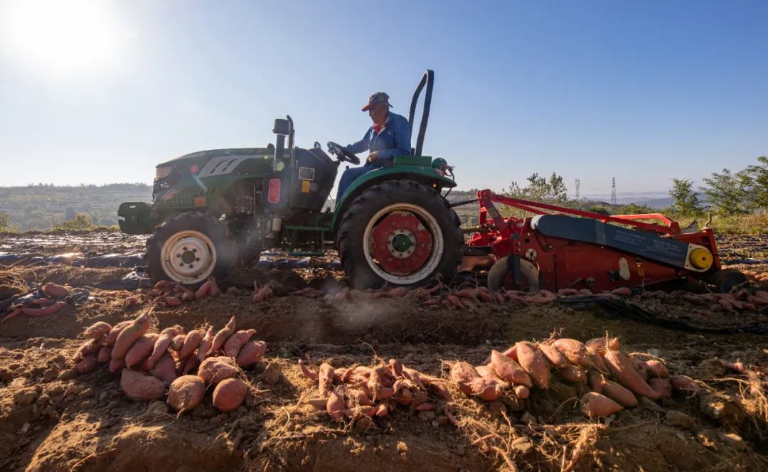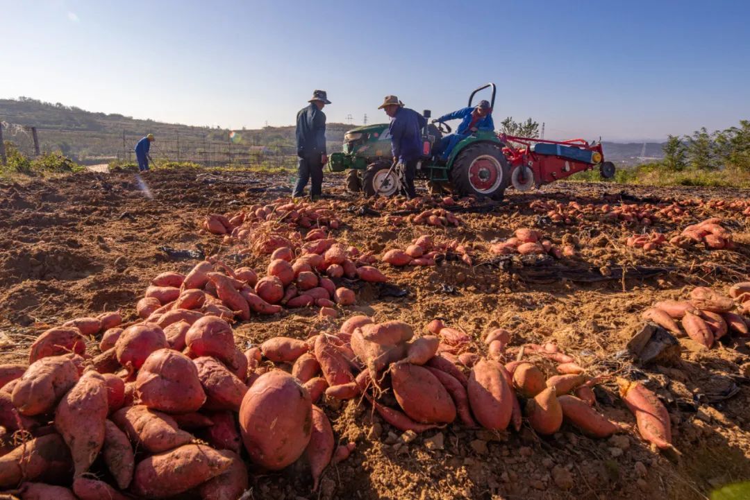 村民和拖拉机在地里忙碌今年的地瓜丰收,不仅让村民们收获了满满的果实,更让他们看到了乡村振兴的希望。据了解,老官庄村的地瓜种植已成为当地的重要产业之一,为村民们带来了可观的经济收入。