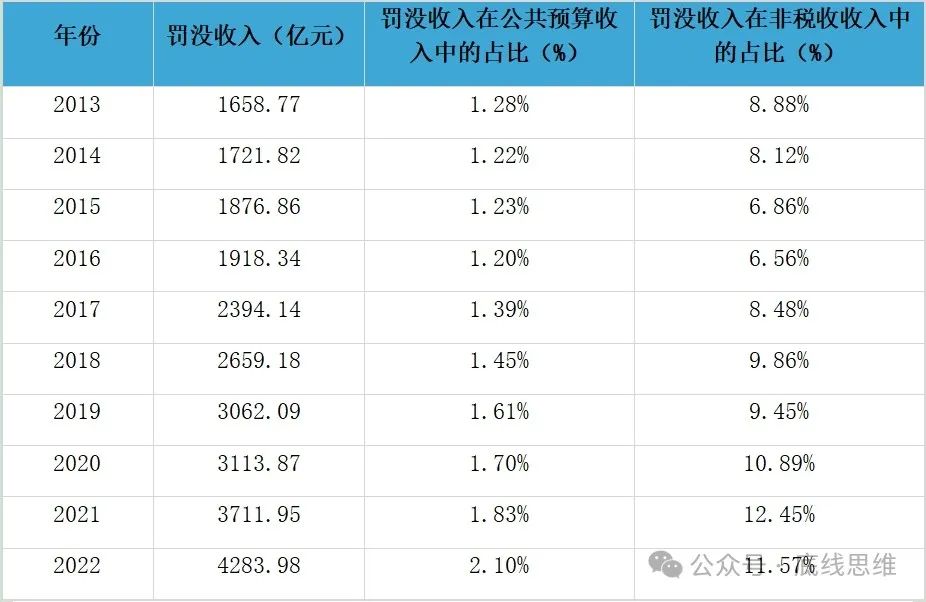 表2 2013-2022年全国罚没收入情况 作者制图造成罚没收入异常增长的原因主要有两方面:
