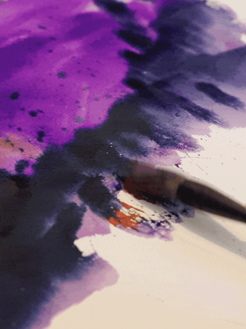 她的画不重写实,不是画一个苹果或者一幅人像,而是用抽象的方式画自己心灵的风景,表现的是个人的情感。紫色、红色、蓝色…非常多彩多姿,比较接近中国的水墨画,可水墨画只是用黑白。