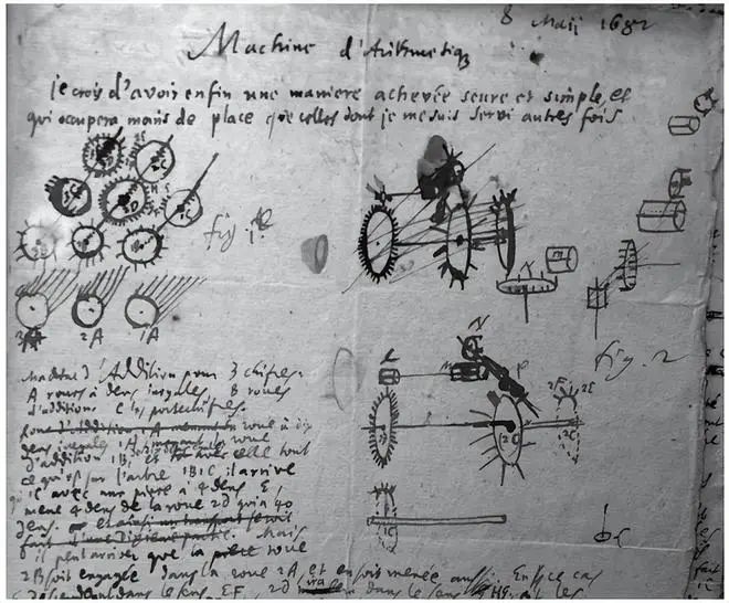 莱布尼兹1679年用法语写下的“算术机的最后修正”及1682年自己起草的设计图其次,作为物理学家和力学家,牛顿的工作方式是经验的、具体的和谨慎的,他将微积分成功地应用到许多具体问题以推广他的研究成果,并从实际应用中证明微积分方法的价值。
