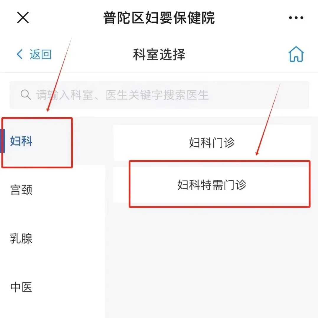 预约方式:关注普妇婴官方服务号,点击“微就医”-“门诊预约”-“妇科”-“妇科特需门诊”进行预约。