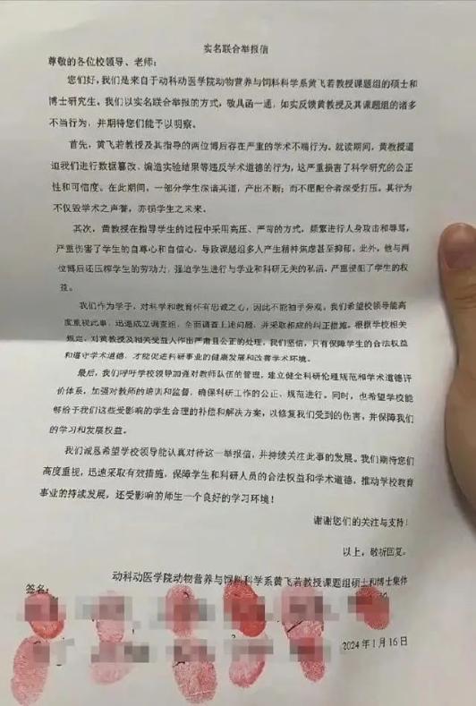 据央广网,2024年1月16日,华中农业大学11名学生实名举报该校一名黄姓教授论文造假、教材编写造假、打压学生等学术不端行为,公开举报材料125页,引发广泛关注。
