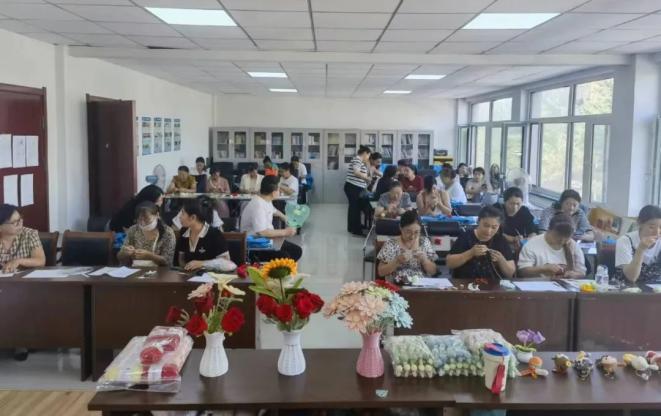 增收共富,团结奋斗共同进步。就业是最大的民生,为拓展辖区居民的就业增收渠道,各社区动员辖区有就业需求的居民积极参加县里举办的招聘会,寻找合适的岗位,同时针对居民需求开展就业技能培训,搭建就业创业平台。社区党组织联合康乃馨家政常态化开展手工编织培训班,聘请专业教师通过“理论讲解+操作指导”相结合的形式为学员授课培训,培训合格后会由家政公司帮助居民对接零活订单。手工编织不受学历、年龄、时间等限制,无门槛、上手快,在老师的指导下,一件件“艺术品”在指尖诞生、产生价值,帮助辖区内的很多全职宝妈实现了灵活就业增收,解决了实际困难。