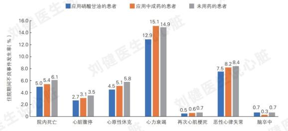 这项研究依托中国急性心肌梗死注册研究数据,纳入全国108家医院超过1.3万名ST段抬高型心肌梗死患者,对比使用硝酸甘油或速效救心丸等中成药对症状缓解和梗死相关动脉血流的影响[1]。结果发现,在症状缓解方面,使用硝酸甘油的患者表示用药后症状完全缓解或者部分缓解的比例更高(硝酸甘油5.9%+33.8% vs. 中成药6.0%+25.1%);在梗死相关动脉血流方面,服用硝酸甘油或者中成药后均没有显著改善。但是在预后方面,具体包括住院期间发生的死亡、心脏骤停、心力衰竭、心原性休克、恶性心律失常、再次心肌梗死和脑卒中,无论使用硝酸甘油还是中成药,或者是未用药的患者,这些事件的发生率没有差别。