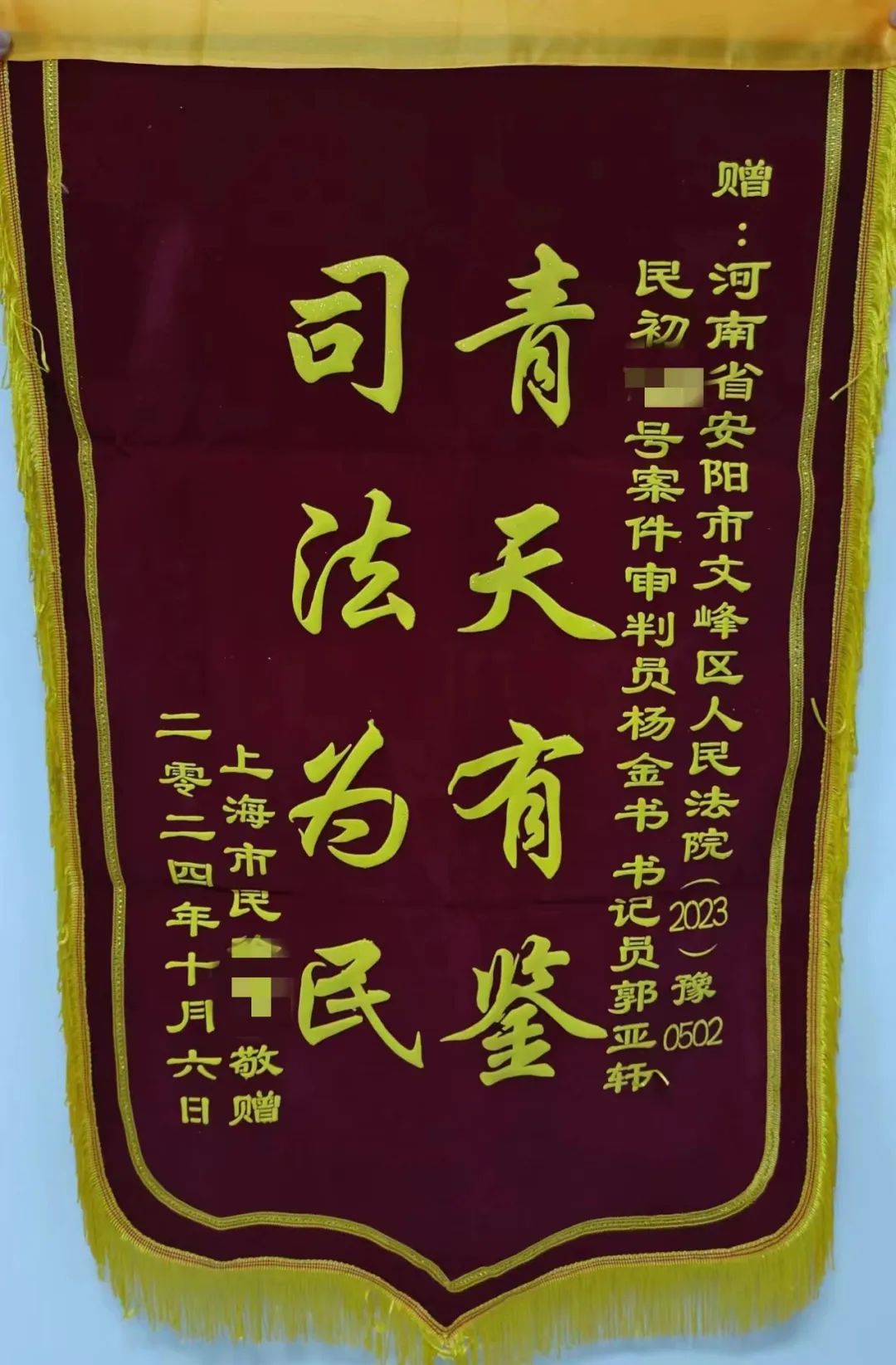 原标题:《锦旗+感谢信远赴千里 为文峰法院好法官而来》