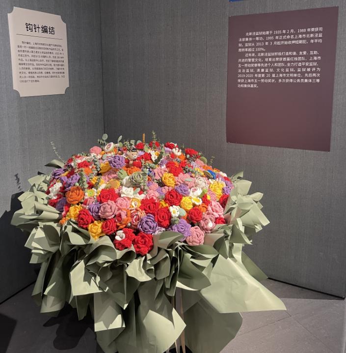 大花束本作品运用了钩针编织技艺。结合花叉、菊花针等附属工具,运用平片钩法、简状钩法、圆片钩法等技法进行编织,通过短针、长针、辫子针等针法变换出多种花样,极大地丰富了作品的多样性和艺术性。