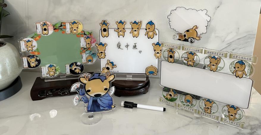 鹿鹿乐萌中医文创系列鹿鹿乐萌中医文创系列,以原创小鹿形象作为IP,创作出一系列富含中医元素的文创作品如摆件、文具。以国家级非物质文化遗产——八段锦,和五行、中医诊疗技术等为元素,并结合网络流行语和谐音梗,使中医药文化元素遍及生活周边,将专业性、趣味性、实用性结合为一体,使人们喜爱中医元素用品,使中医药文化传播普及也成为一种时尚流行。