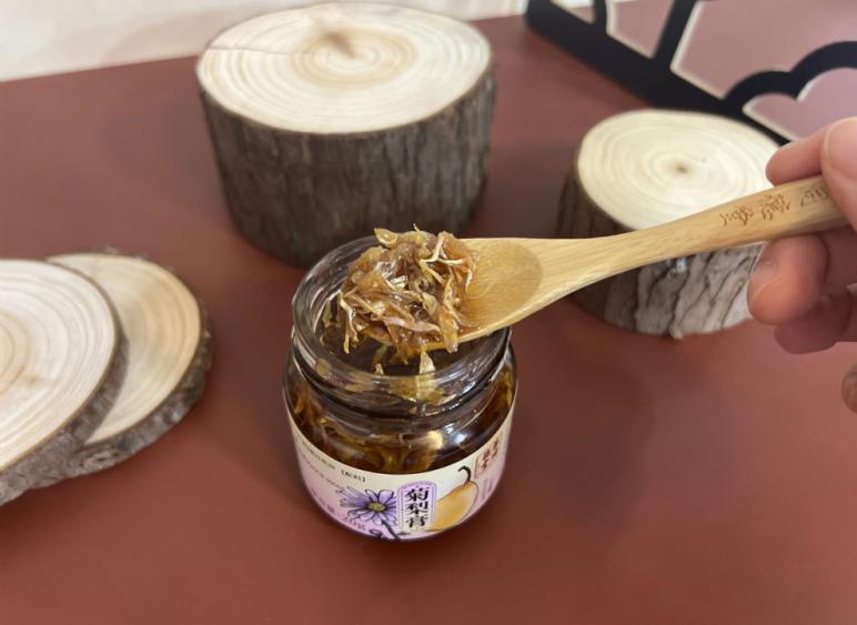 菊梨膏本品使用市级非遗“蔡同德堂中药煎膏技艺”加工而成,使用传统紫铜锅手工分别煎熬菊花与雪梨的精华,武火三次熬,文火收成膏,通过“浸、煎、榨、化、滤、熬、收”的七字诀,以独特的工艺及全手工的制作流程,继承了膏方的传统特色。