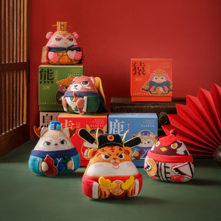 五禽戏香包本作品以安徽亳州非遗华佗五禽戏为形象,将五禽戏形象与现代人向往的古代职业相结合进行外观设计,并搭配手绘设计的五毒传统纹饰,形象生动可爱。内部采用由亳州华佗香方调制而成的养生香粉制成香包。