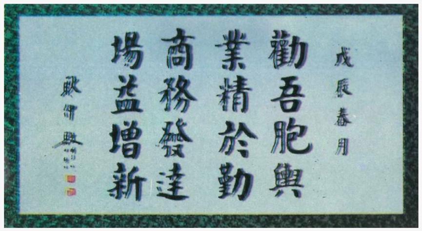 商场大厅内,高悬“天津劝业场”匾额,五个遒劲有力、庄严凝重的金字,出自天津著名书法家华世奎之手,被称之为“中华历代名匾”之一。场内还高悬“劝吾胞舆,业精于勤。商务发达,场益增新”四言联句,首字相连正是“劝业商场”四字。