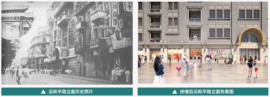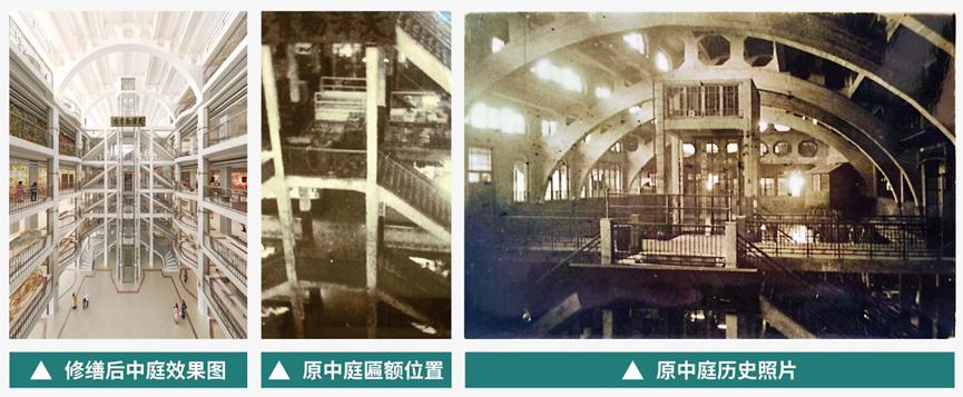 例如,在老厦外檐复原过程中,将通过修补、清洗等方式,全面复原外檐水刷石外墙历史面貌;拆除老厦上层凹型阳台后期添加的装饰,恢复外立面门窗的棕色油饰;拆除首层80年代外挂深色大理石材饰面,复原首层历史挑檐造型和颜色,与老厦上部外檐协调统一;提升首层橱窗的场景展示功能,增强沿街的商业氛围和互动效果。