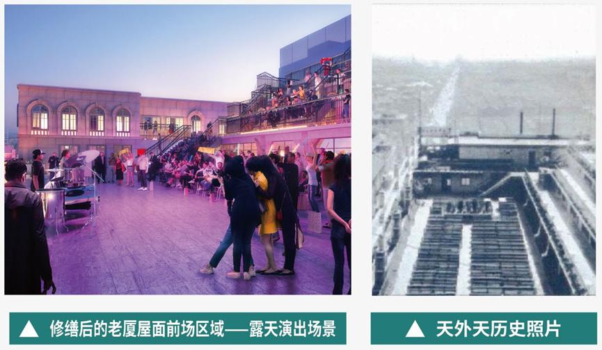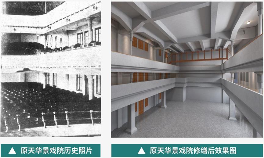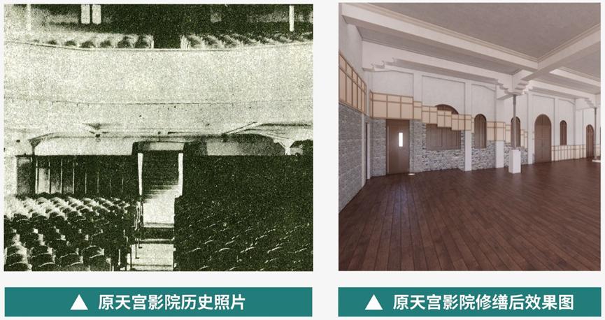 修旧如旧,重现“最潮社交场”其中,老厦部分作为历史见证者,将进行精心修缮工作,以“保护为主、修旧如旧”为原则,力求在保持建筑原始风貌的基础上,恢复其历史韵味。修缮工作包括对劝业场中庭、老厦外檐、原天外天屋顶花园、原天宫影院、原天华影剧院等重点空间复原,重现“最潮社交场”的历史盛景。
