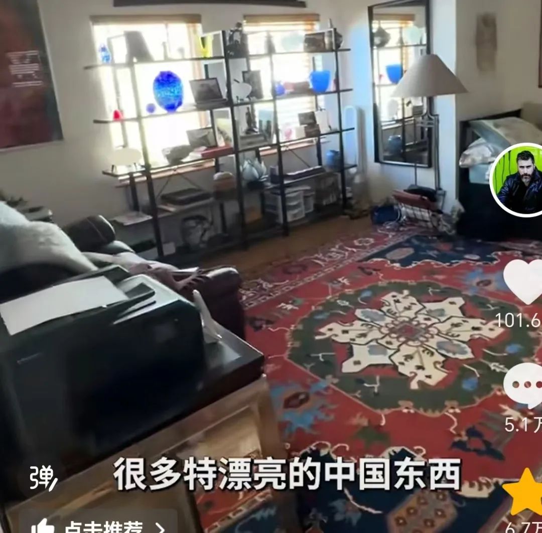 在曹操的带动下,他的美国家人也爱上了中国。连他妈妈在美国家里的装修,都是满满的中国风。