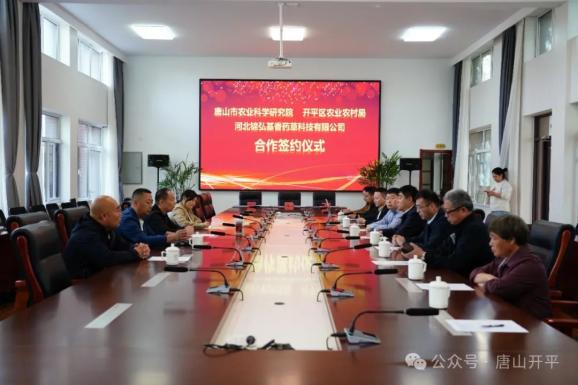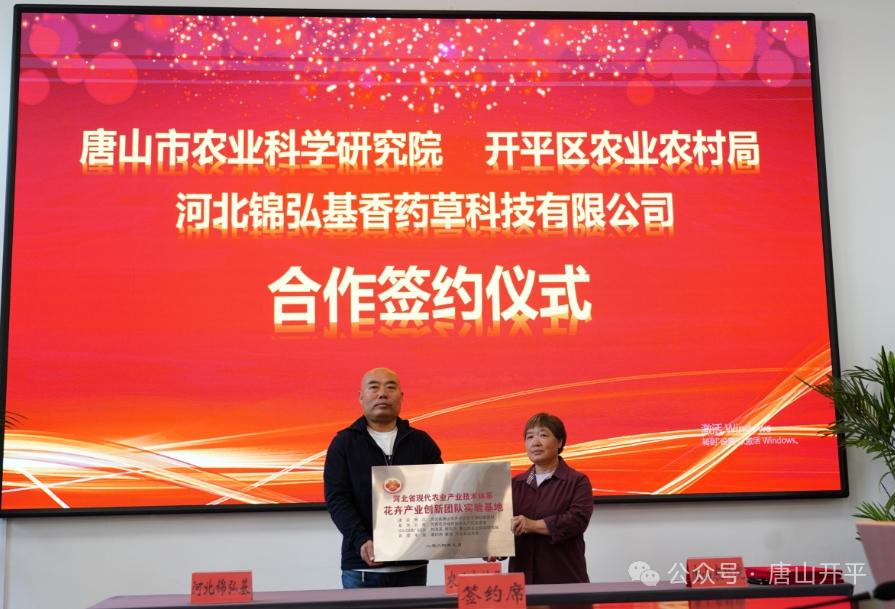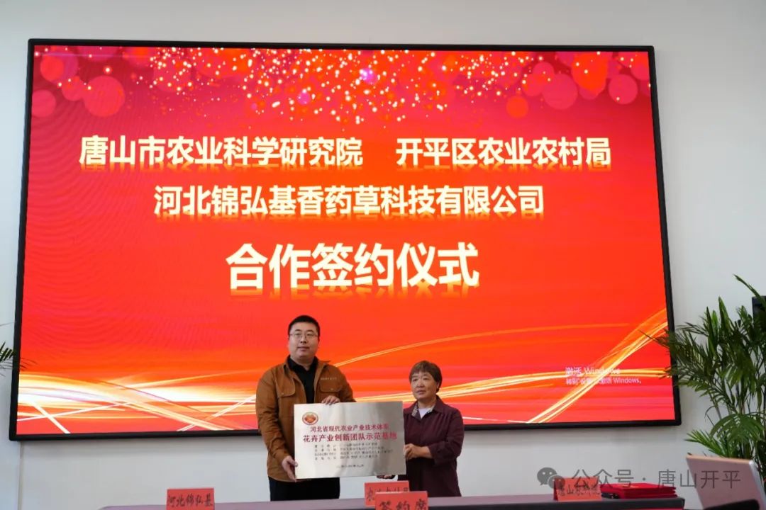 10月16日上午,开平区农业农村局、唐山市农业科学研究院、河北锦弘基香药草科技有限公司三方合作签约,推动开平区芳香植物种植标准化技术推广,打造“国家级芳香植物三产融合标准化示范区”。区领导周勇出席活动。
